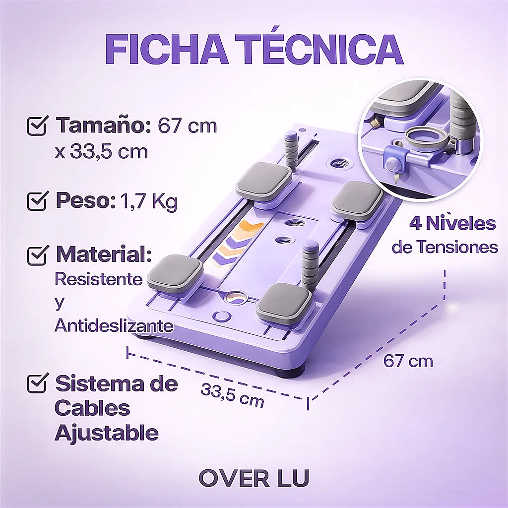 aGracias al sistema de resistencia y movimiento controlado, logras cambios reales: piernas más firmes, abdomen más plano y glúteos más levantados.