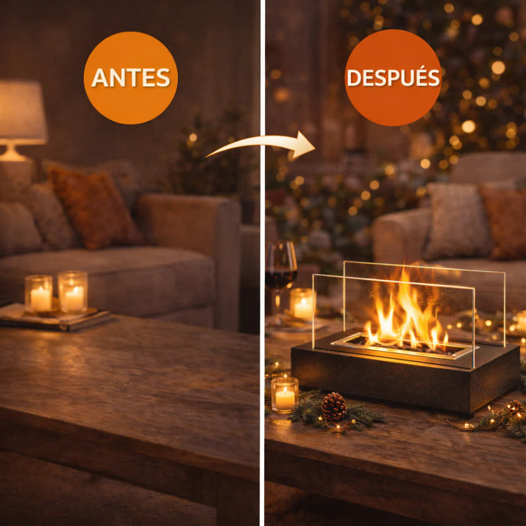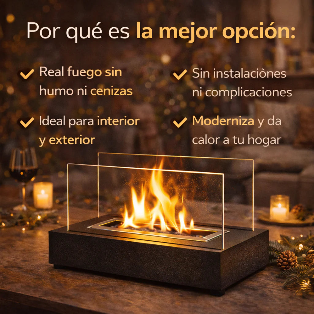 Crea momentos mágicos en casa con una llama real, segura y sin humo. Perfecta para reuniones familiares, noches románticas y compartir con amigos. Ambiente cálido, elegante y acogedor en segundos. 🔥✨