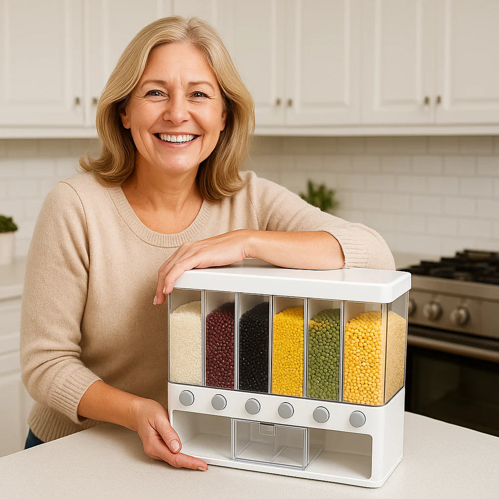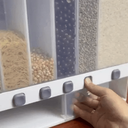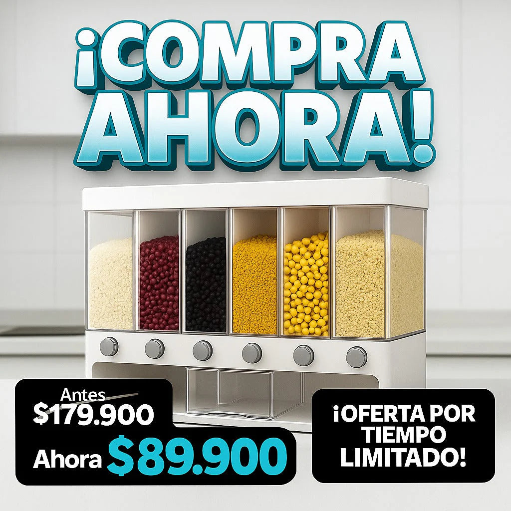 Olvídate del desorden y transforma tu cocina en segundos con el Dispensador de Granos 7 Compartimentos. Su sello hermético mantiene todo libre de humedad e insectos, mientras su diseño transparente y botón de un clic te permite ver y dispensar la porción exacta que necesitas. Dale a tus ingredientes la frescura que merecen y disfruta de una cocina impecable