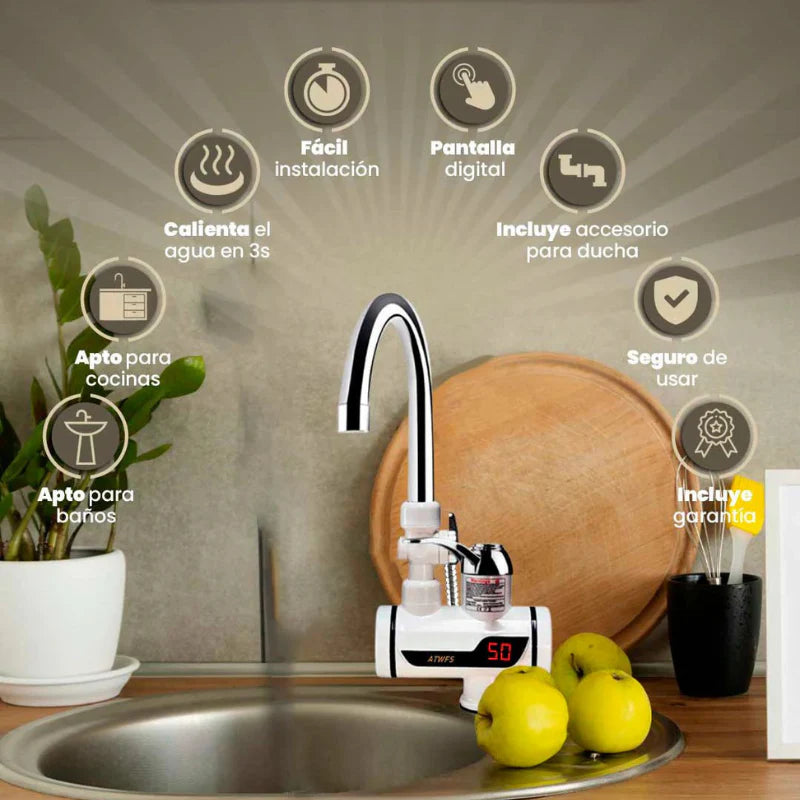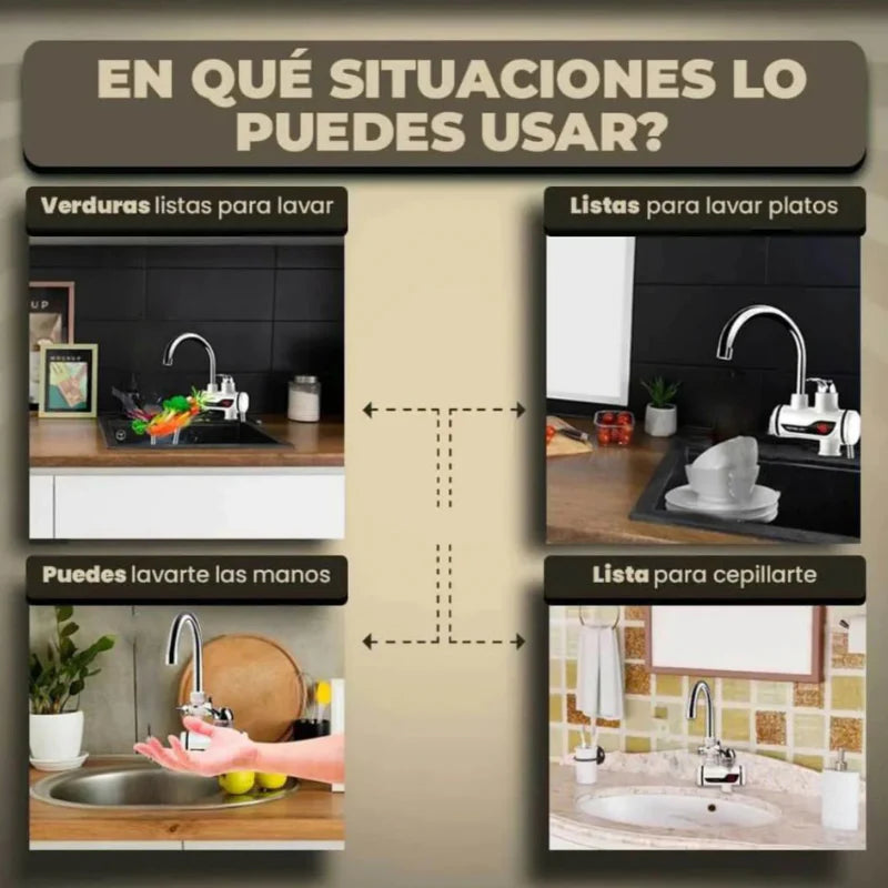Ahorra Hasta un 70% Más de tiempo, energía y gas. Calienta el agua que necesites rápidamente. calentar el agua en ollas y estufas puede demorar de 7 a 9 minutos, con este grifo demora máximo 5 segundos.