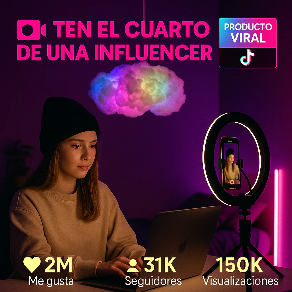 No reemplaza una luz blanca de techo. Está pensada para ambientar: dormir, estudiar, ver pelis o crear contenido.