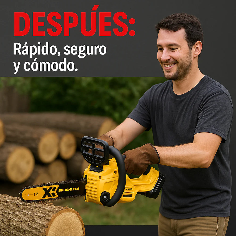 Si estás cansado de perder horas con herramientas manuales o motosierras viejas a gasolina, ha llegado tu solución. La Motosierra Compacta 128V MAX combina potencia profesional, diseño ligero y respaldo real, ideal para finca, jardín o construcción. Su motor sin escobillas garantiza un desempeño superior y más años de vida útil. Además, cuenta con ajuste automático de cadena, lubricación automática, 2 baterías de litio y cargador rápido. Con apenas 4.08 kg de peso, podrás trabajar cómodamente sin cansarte.