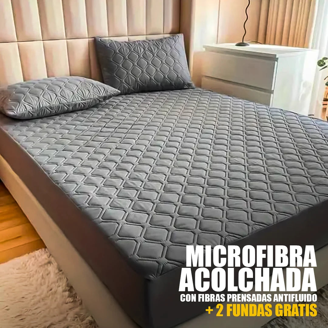 Microfibra Acolchada: Fibras prensadas que protegen tu colchón de sudor, saliva y fluidos corporales.
